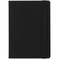 Ежедневник с твердой обложкой, выполнен из материала Nice Touch, черный АА, дополнен резинкой с лейблом из материала Soft Touch и ляссе в цвет обложки.