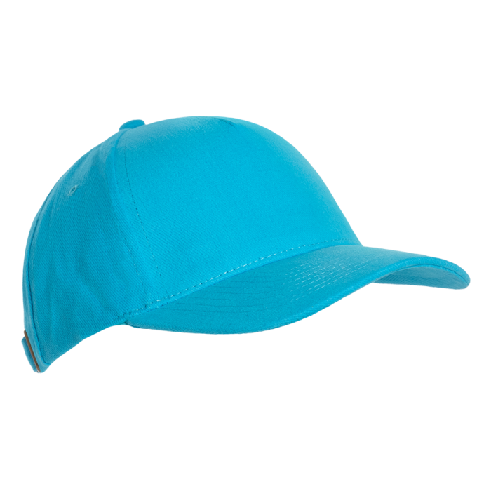 Бейсболка-пятиклинка без лобового шва с изогнутым жестким козырьком. Посадка регулируется ремешком на металлической застежке.