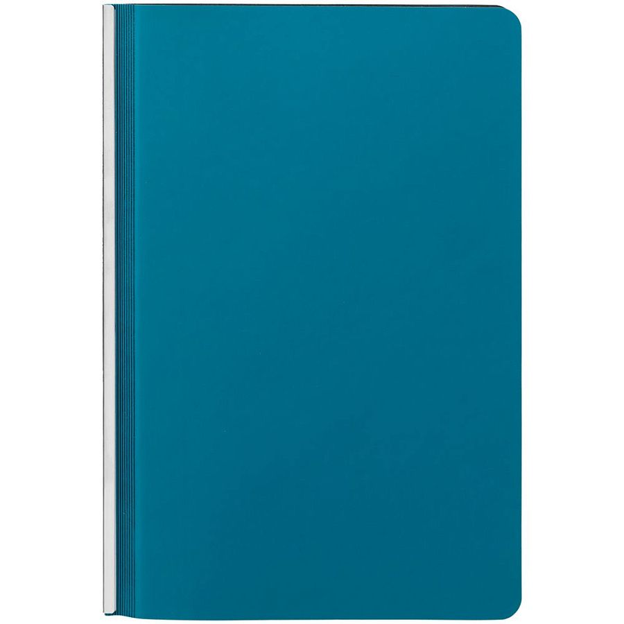 Ежедневник с гибкой обложкой и металлическим корешком, выполнен из материала Soft Touch, цвета морской волны II, дополнен серебристым обрезом блока и ляссе.