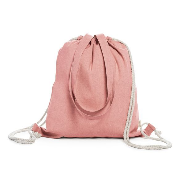 Сумка-рюкзак на завязках из 100% переработанного хлопка в крапинку, с подходящими ручками длиной 70 см и завязками натурального цвета. 140 г/м2.