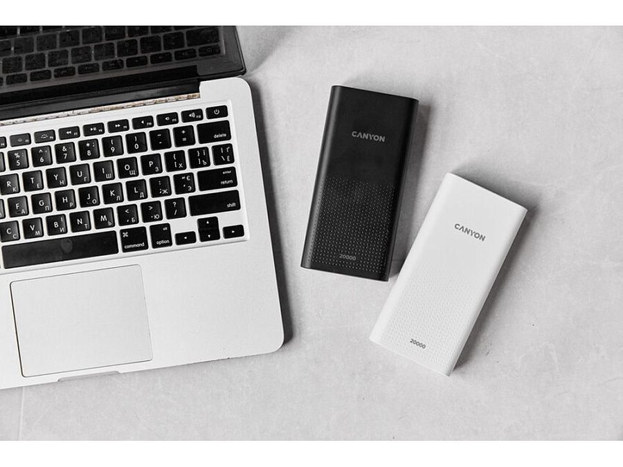 Каждый пользователь гаджетов сталкивался с проблемой — смартфон или наушники разряжаются на самом интересном месте сериала, игры или горячего диалога в чате! Чтобы вы могли пользоваться мобильным устройством в течении всего дня, не опасаясь о разряженной батарее, Canyon выпустил модель аккумулятора PB-2001. Ее отличает максимальная емкость при довольно компактном размере, а также 2 зарядных входа — Micro-USB и Type-C. Аккумулятор заряжает 2 устройства одновременно через выход USB-A. Кроме того, повербанк снабжен шестью типами защиты и облачен в стильный темно-графитовый или белый корпус. Максимум производительности и минимум места в вашей сумке!