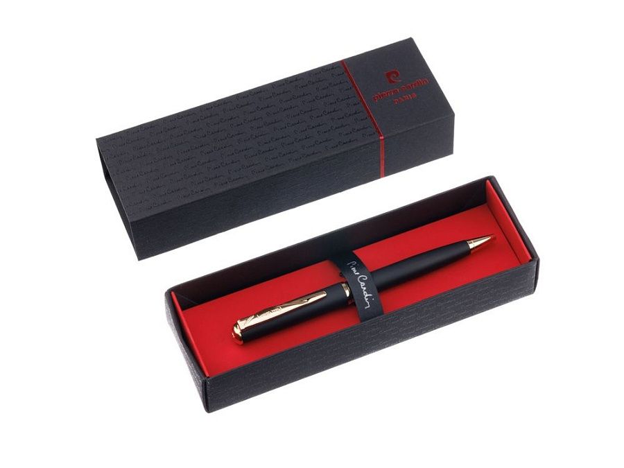 Шариковая ручка Pierre Cardin GAMME Classic • Корпус - латунь. Цвет - черный; • Отделка - матовое покрытие; • Детали дизайна - позолота; • Упаковка - картонная коробочка черного цвета с картонным ложементом красного цвета; • Размер упаковки -175 х 55 х 35 мм, вес 35 гр Комплектация: • Металлический шариковый стержень с логотипом Pierre Cardin на корпусе с чернилами синего цвета; • Инструкция по использованию ручки. Ручки Pierre Cardin серии GAMME Classic имеют классическую форму и представлены в самых основных корпоративных цветах: черный, красный, синий, серебристый или стальной. Специально подобранные элементы дизайна выгодно подчеркивают стиль каждой модели: глянцевые отделки представлены с золотистыми клипами, ручки с матовым покрытием наиболее выгодно выглядят с хромированными элементами.