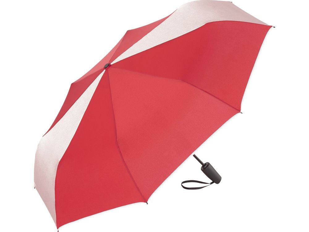 У этого зонта на двух диагональных клиньях и на отделке чехла имеется светоотражающее нанесение. Это обеспечивает дополнительную защиту в темное время суток. Мягкая пластиковая ручка с удобной кнопкой открытия и защита от порывов ветра делают зонт незаменимым аксессуаром.