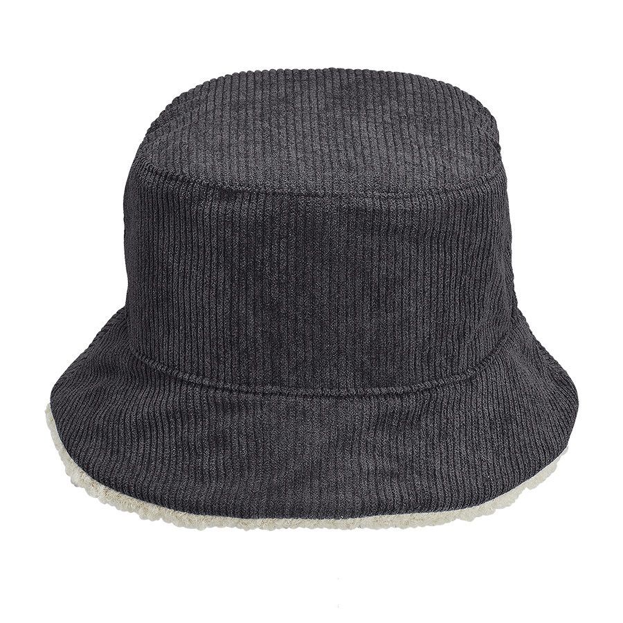 Стильная двусторонняя панама. Внешняя сторона выполнена из вельвета, внутренняя - из шерпы бежевого цвета.