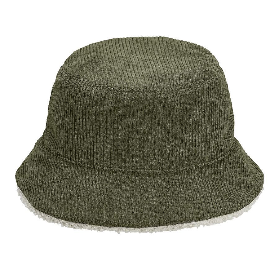 Стильная двусторонняя панама. Внешняя сторона выполнена из вельвета, внутренняя - из шерпы бежевого цвета.