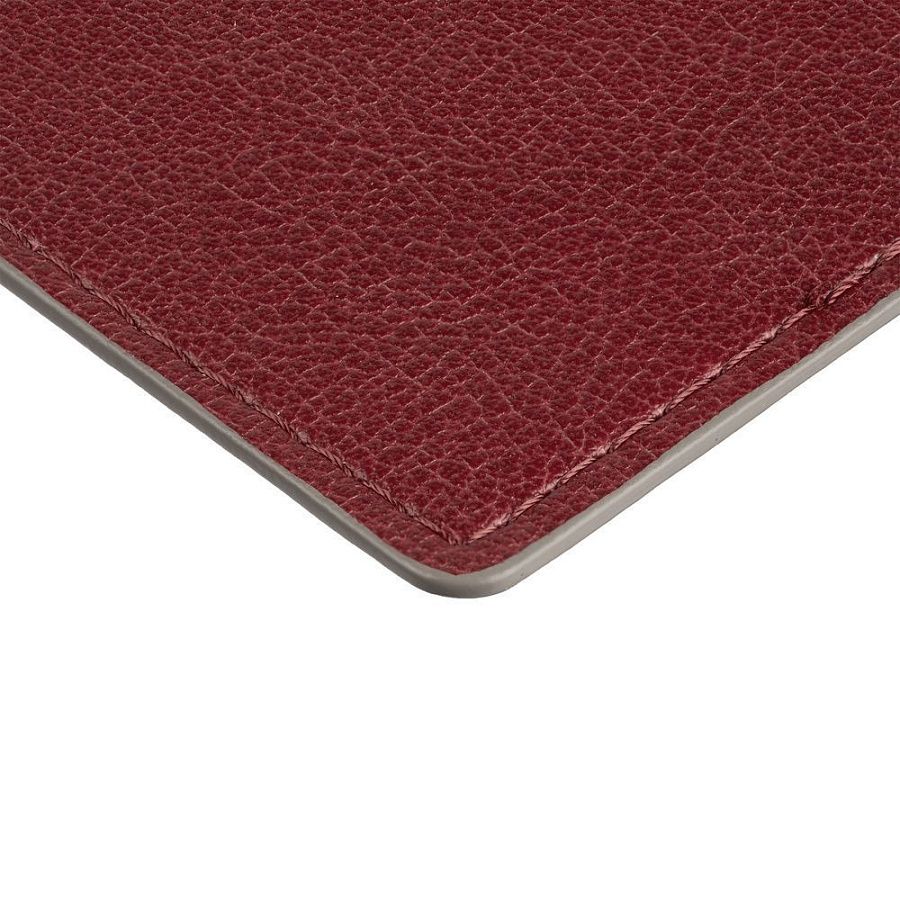 Обложка выполнена из материала Petrus, красный PP. Срез обложки окрашен в серый цвет.