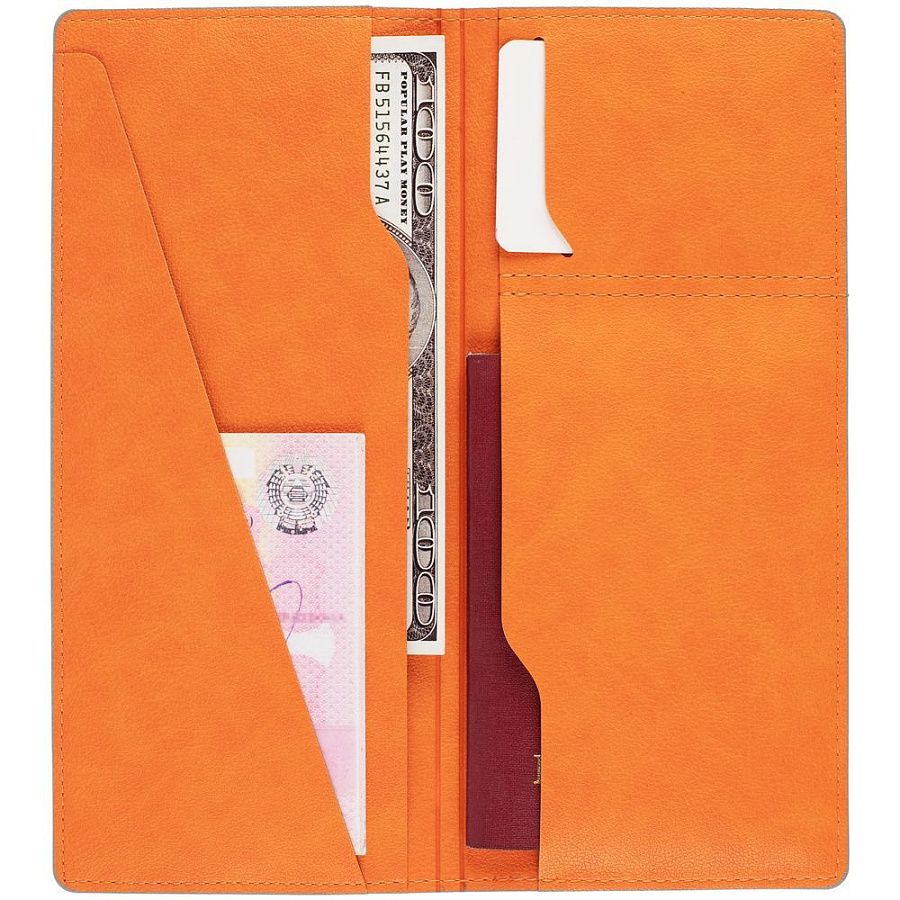 Имеет 5 отделений: для билетов, паспорта, визиток или кредитных карт.