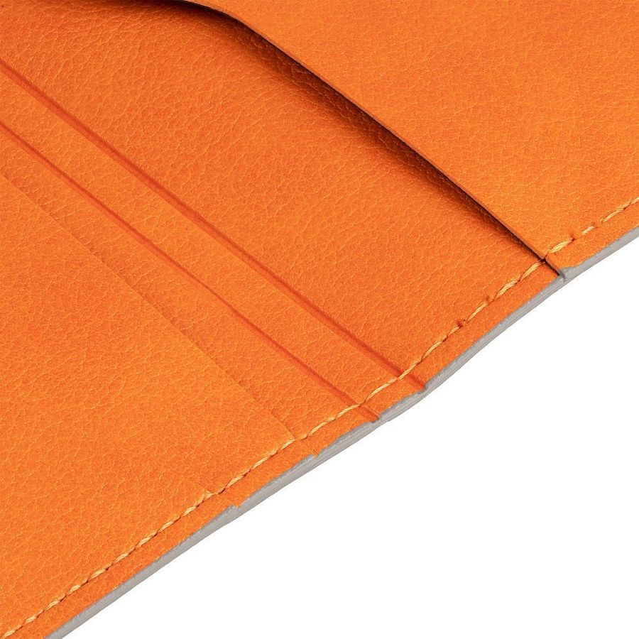 Органайзер выполнен из материала Petrus, оранжевый ОО, дополнен окрашенным срезом края серого цвета.