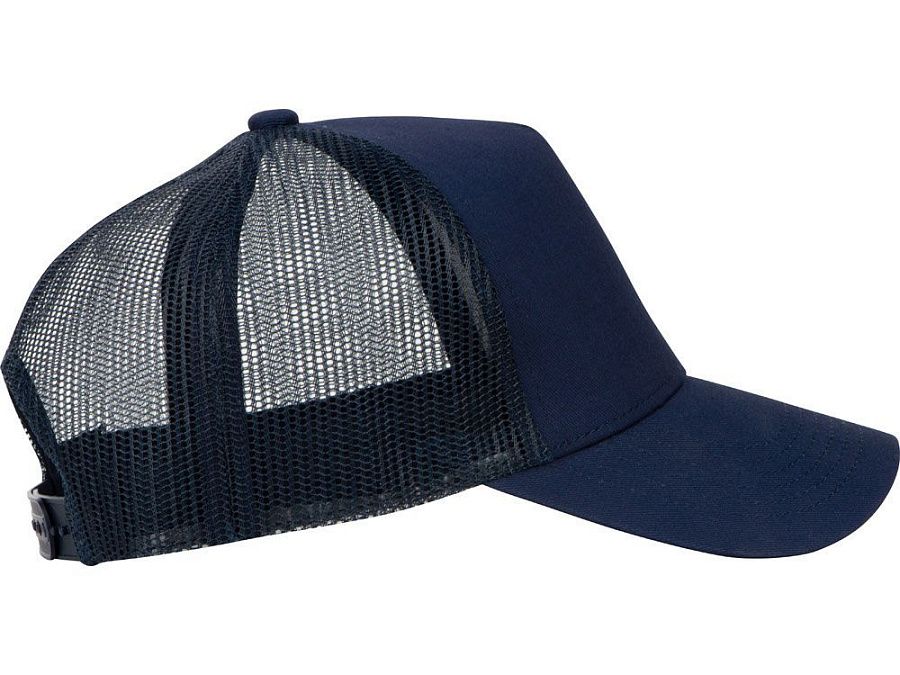 Пяти панельная бейсболка с передней частью из хлопка для комфорта головы и лба. Задняя часть из пластиковой сетки, которая отвечает за циркуляцию воздуха и обеспечивает изделию износостойкость. Для подгонки по размеру головы — пластиковая застежка.