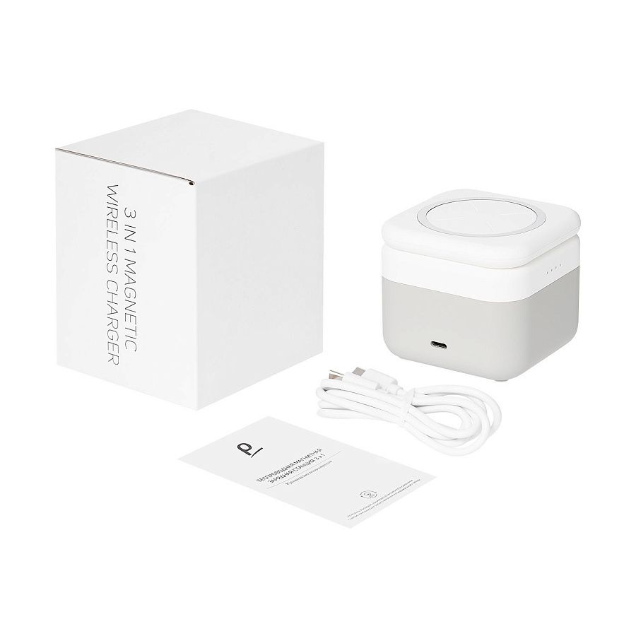 Новая беспроводная магнитная зарядная станция 15W 3в1 – эксклюзивная модель Portobello. Сube Wireless Magnetic позволяет заряжать сразу 3 гаджета одновременно: смартфон, наушники и смарт-часы. Аксессуар выполнен в креативном дизайне, что позволяет ему органично вписаться в современный интерьер квартиры или офиса. Кроме того, он помогает уменьшить количество проводов на рабочем столе или прикроватной тумбе.