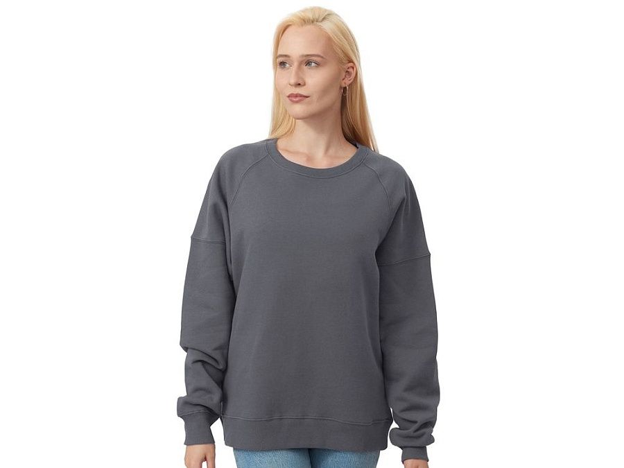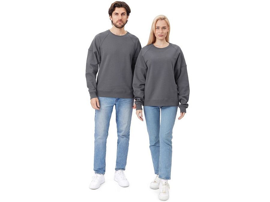 Главная особенность этого свитшота оверсайз — необычный рукав из двух частей: верхней — реглан до середины предплечья — и нижней, которая заканчивается резинкой. Благодаря такому необычному крою свитшот сидит комфортно по фигуре.