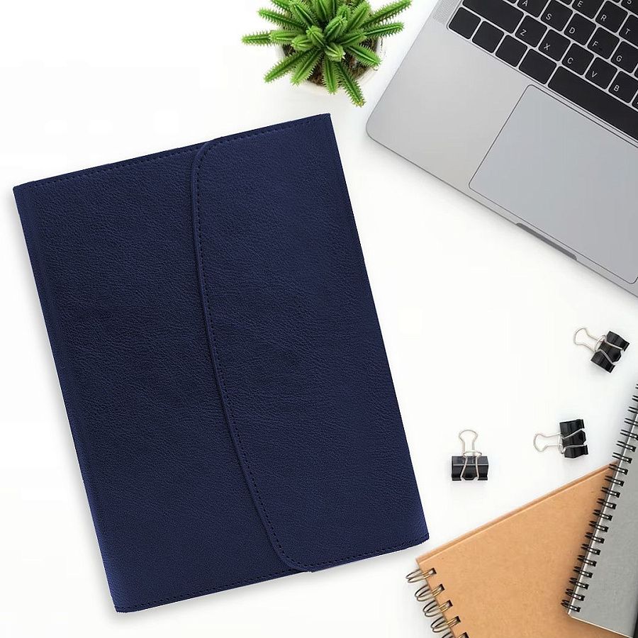 Ежедневник-портфолио имеет карман под визитки или бумаги, петельку для ручки.