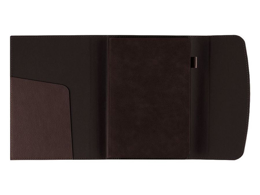 Ежедневник-портфолио имеет карман под визитки или бумаги, петельку для ручки.