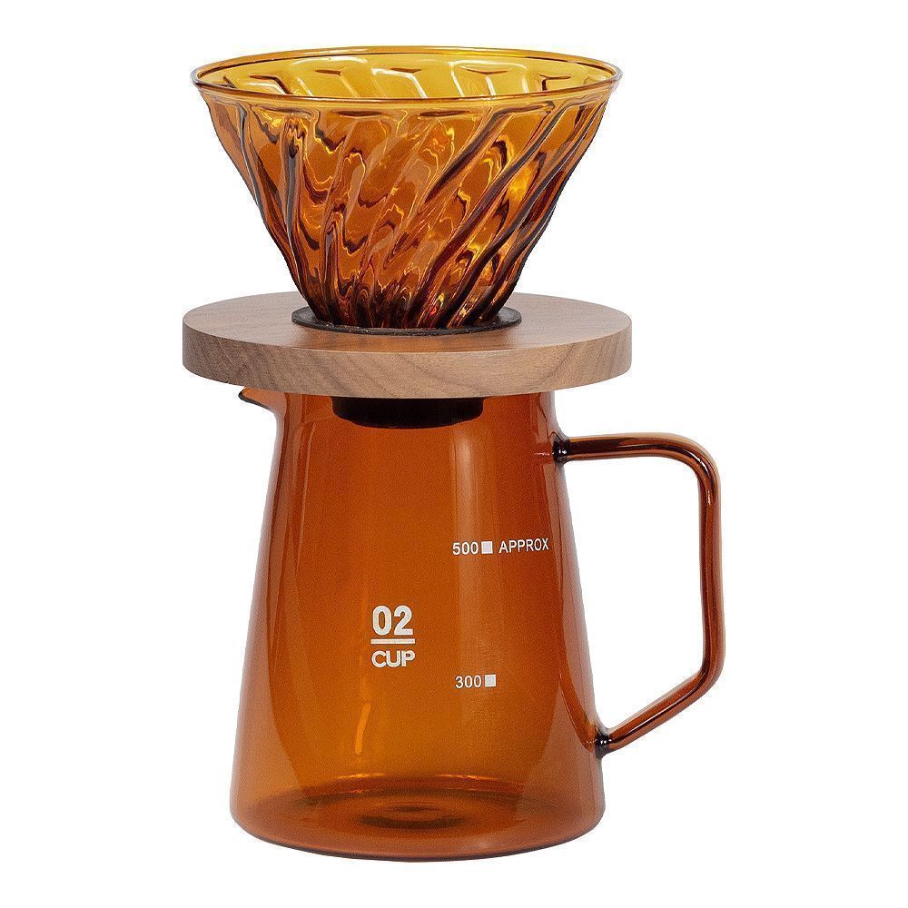 Элегантный кофейный набор с прозрачной воронкой для приготовления кофе методом пуровер от японского короля стекла Hario. Чтобы приготовить вкусный кофе, положите фильтр с молотым кофе в воронку и поставьте ее на кофейник. Медленно вливайте горячую воду в воронку и ждите, когда кофе протечет в графин. Через несколько минут ваш кофе готов!