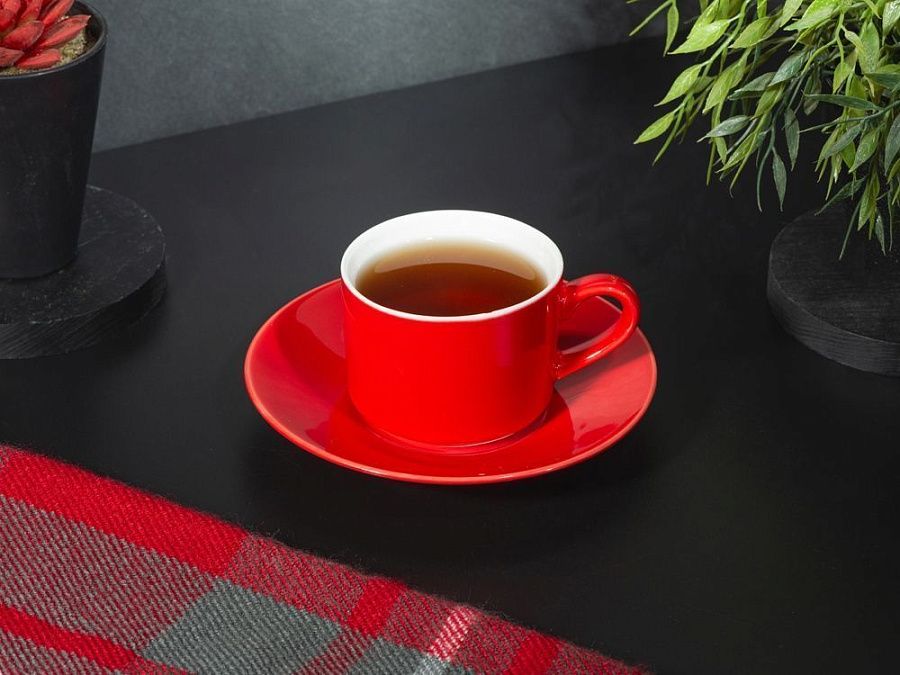 Чайная пара "Phyto" классической формы, внутренняя часть чашки которой окрашена в белый, что позволяет рассмотреть содержимое сосуда, насладившись танцем чаинок или тем, как раскрываются связанные в чай цветы. Обратите внимание на то, что форма дна кружки позволяет устанавливать одну на другую, что поможет сэкономить место для хранения.