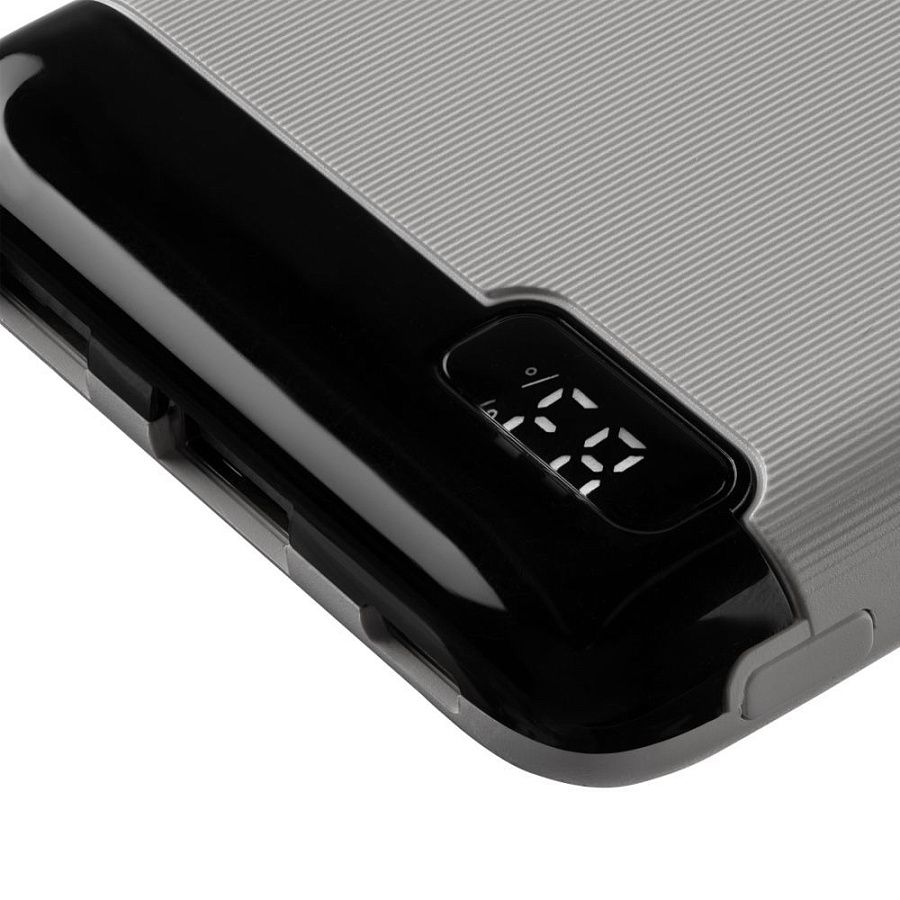 Аккумулятор со входными разъёмами Type-C и Micro USB, а также удобным индикатором заряда в процентах.