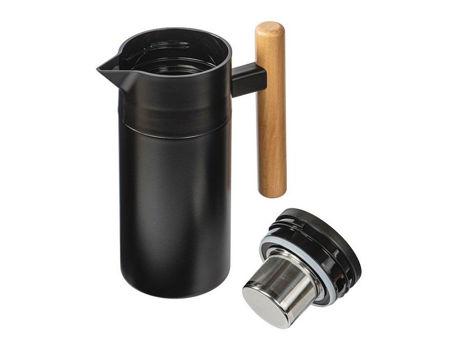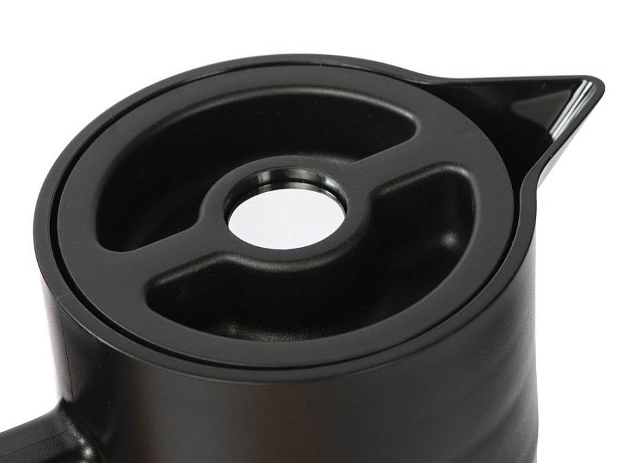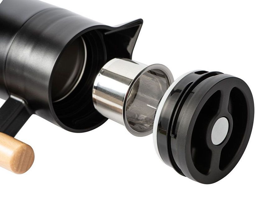 Вакуумный термокувшин черного цвета, подходит для чая и кофе. Сохраняет температуру в течение 24 часов благодаря двойным стенкам с вакуумной изоляцией. Съемное ситечко из нержавеющей стали можно мыть в посудомоечной машине, а деревянная ручка термопота делает его использование особенно удобным и безопасным. Объем термочайника — 1200 мл, этого хватит на 4 обычных чашки чая.