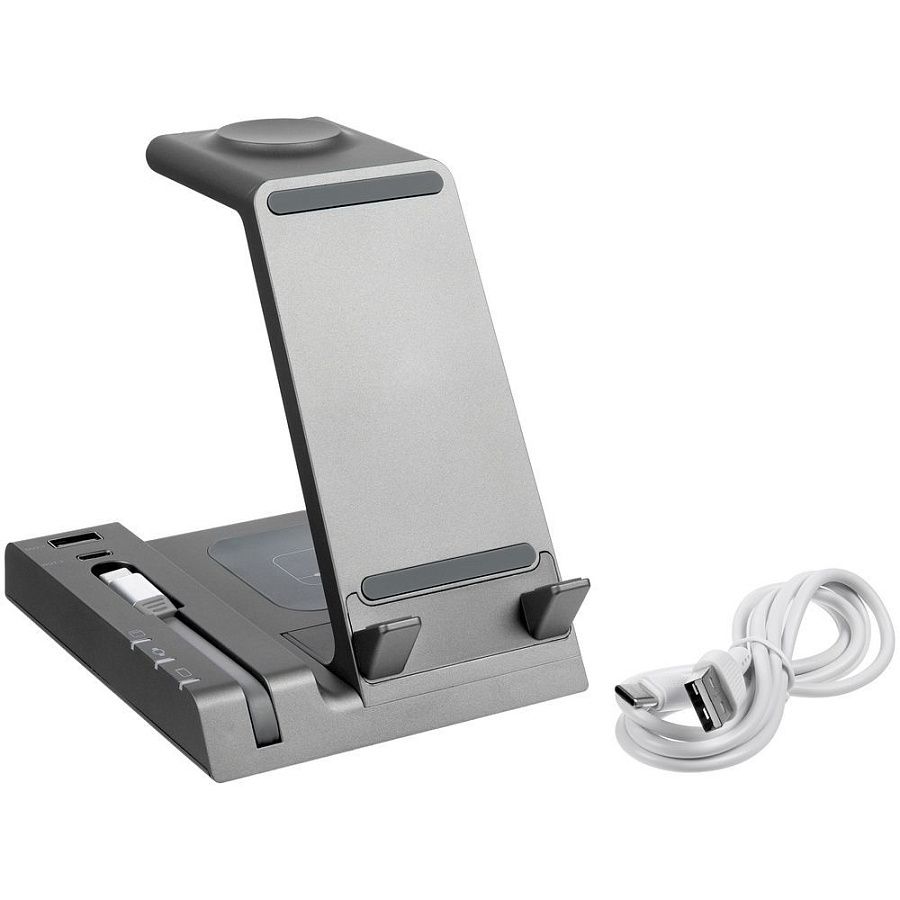 Складная станция беспроводной зарядки transForm, серый металлик
