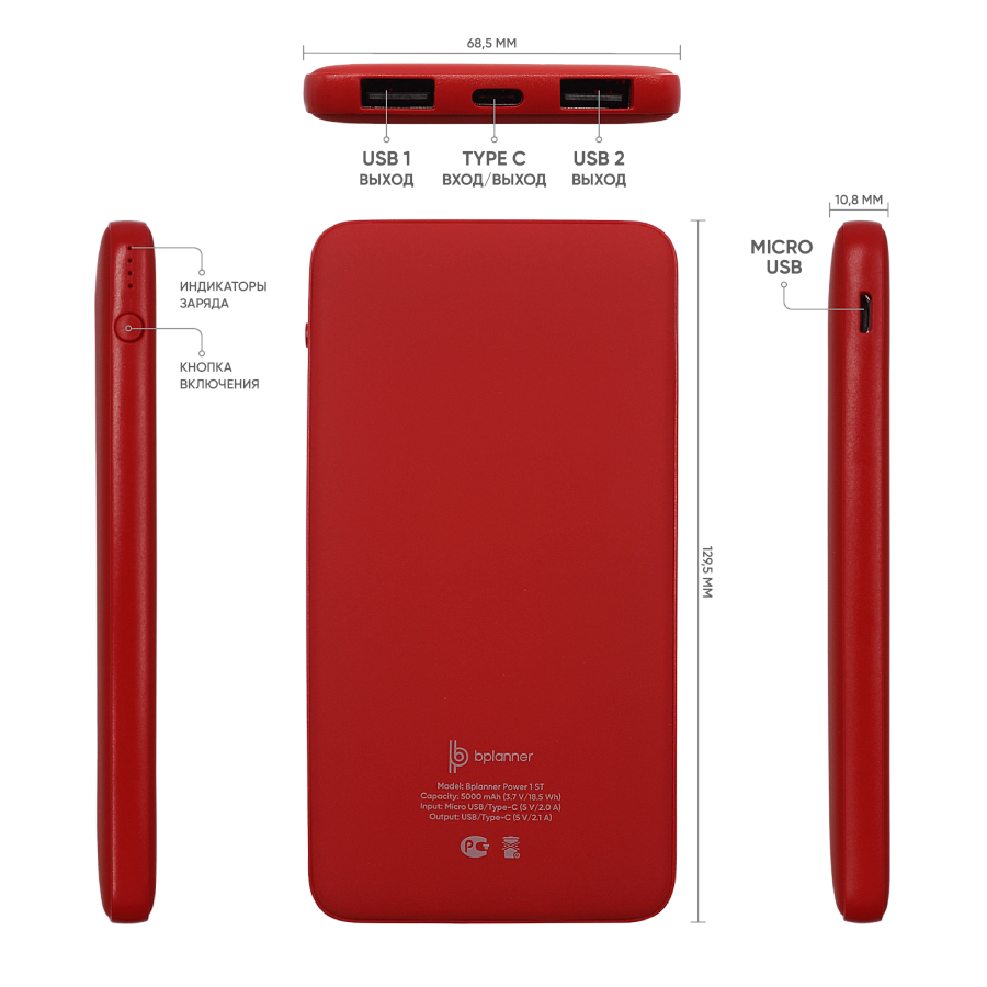 Внешний аккумулятор Bplanner Power 1 ST, софт-тач, 5000 mAh (Белый)