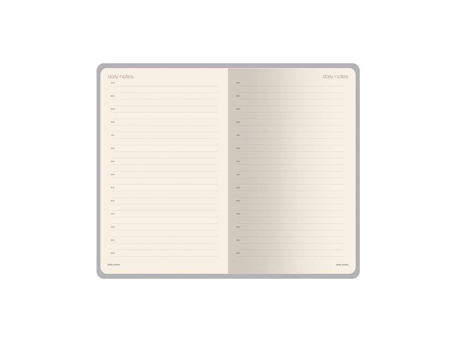 - раздел для планирования имеет линовку серого цвета с указанием времени (интервалы в один час) и выполнен из бежевой бумаги плотностью 70 г/кв.м;