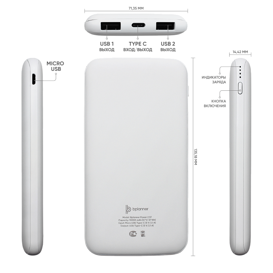 • Внешние аккумуляторы от 6000 mAh из пластика