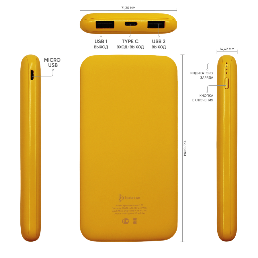 • Внешние аккумуляторы от 6000 mAh желтого цвета