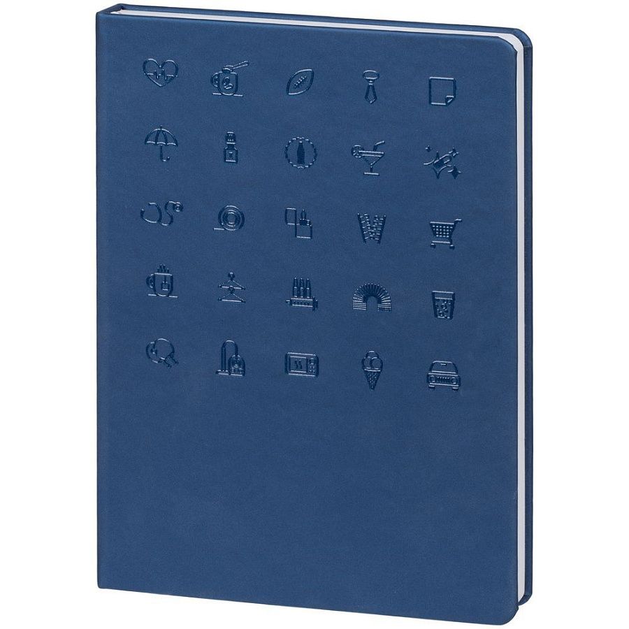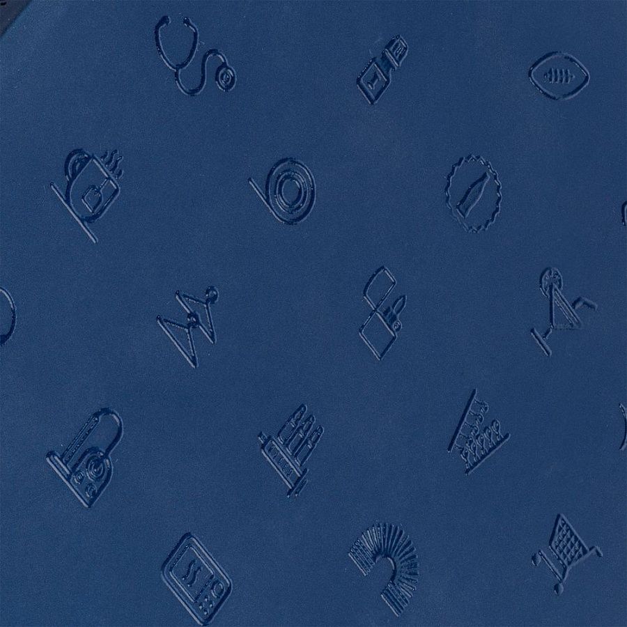 Обложка ежедневника из материала Soft Touch. На корешке обложки выполнено блинтовое тиснение, обложка дополнена вырубкой с печатью на бумаге и полимерными наклейками под смолой.