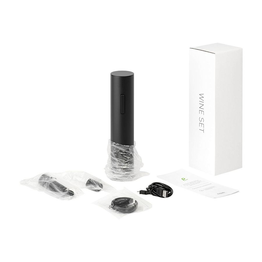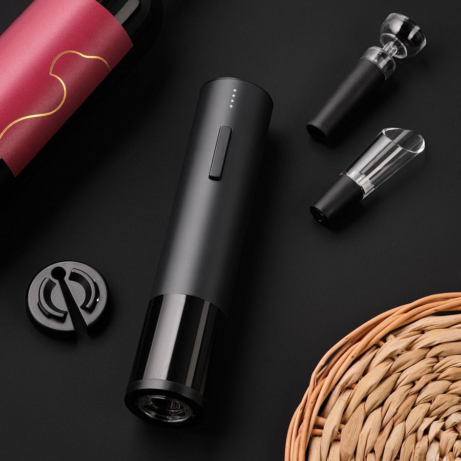 Работает от встроенного аккумулятора, одного заряда хватит, чтобы открыть более 50 бутылок