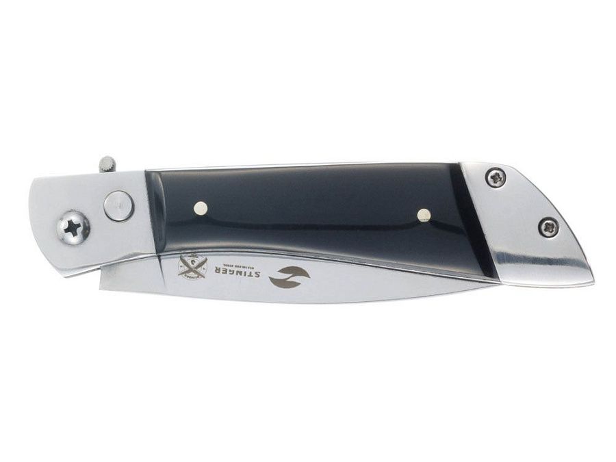 НОЖ СКЛАДНОЙ STINGER Материал лезвия: нержавеющая сталь марки 420 Материал рукояти: нержавеющая сталь, древесина венге Фиксатор лезвия: Rolling Lock Длина ножа: 207 мм Длина клинка: 90 мм Толщина клинка: 2 мм Вес: 115 г Цвет рукояти: чёрно-серебристый Метод открывания клинка: автомат В комплекте: нейлоновый чехол