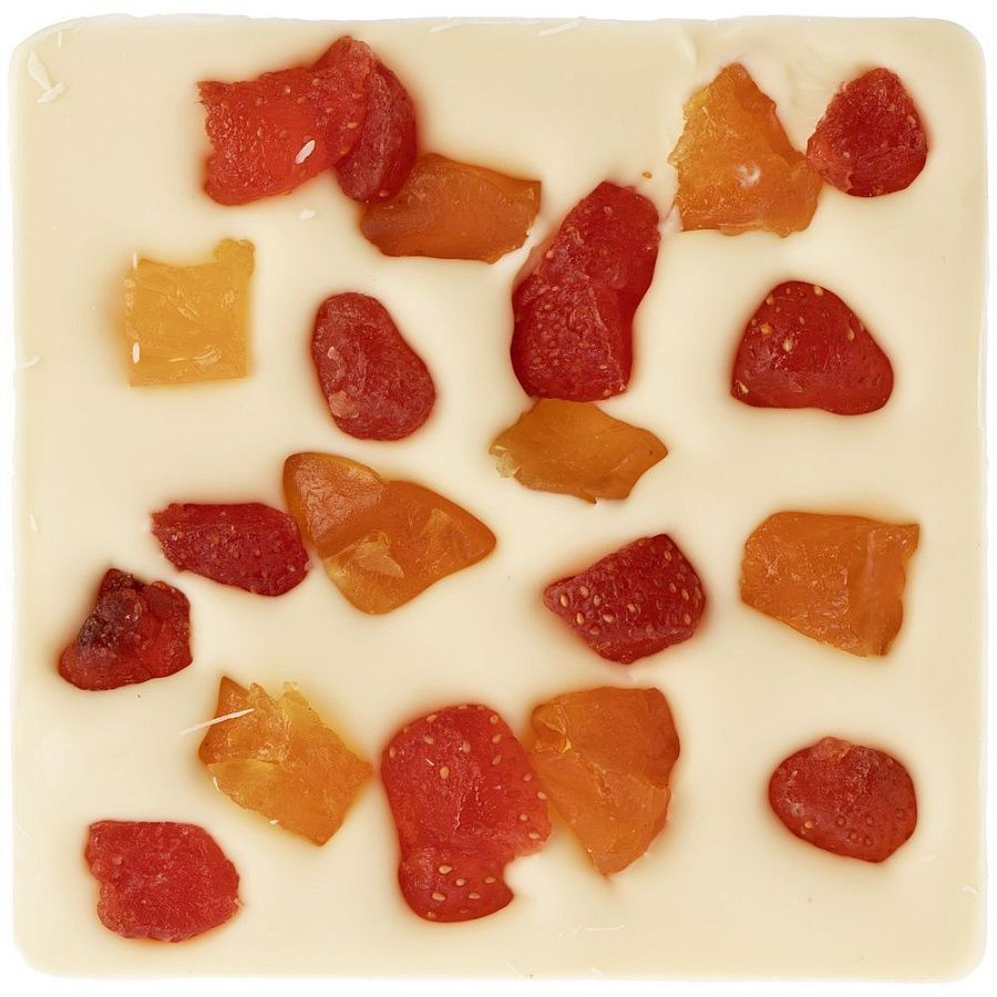Белый шоколад ручной работы, изготовленный по классической бельгийской технологии, с кусочками сушеного персика и клубники.Состав: масло какао, сухое молоко, сахар, эмульгатор (соевый лецитин), экстракт ванили, сушеная клубника, сушеный персик.