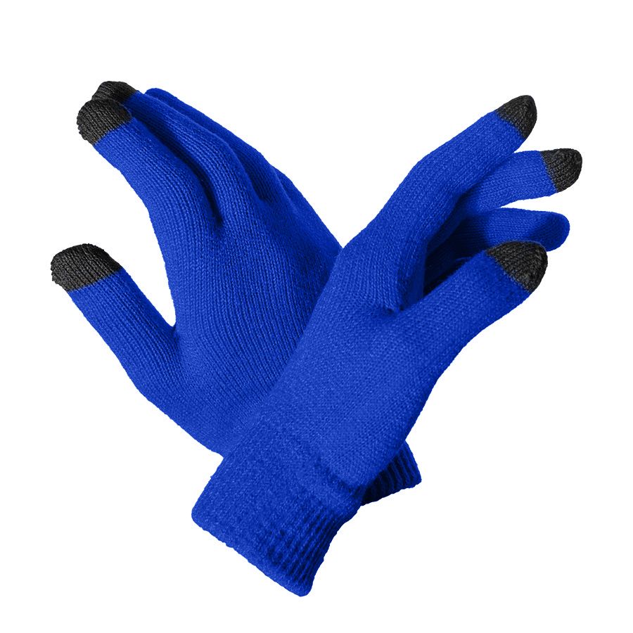 Перчатки из теплого и мягкого акрила с сенсорными пальцами. Основный цвет: ярко-синий. Цвет сенсорных вставок: черный. Цвет, близкий к Pantone 293C.