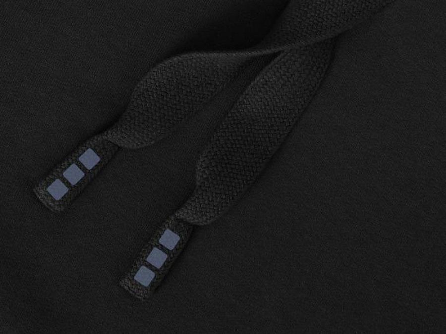 Боковые панели из гладкого трикотажа в рубчик. С V-образной вставкой из гладкого трикотажа в рубчик в центральной части. Манжеты из гладкого трикотажа в рубчик с V-образной формой. С подшивкой из гладкого трикотажа в рубчик. Капюшон на кулиске. Карман "кенгуру". в форме полумесяца. Подкладка для капюшона из тонкого гладкого трикотажа. Выгравированные старинные серебряные люверсы. Атласная лента на шее. Лента контрастного цвета с рисунком «елочка». Ворсованная внутренняя часть для ощущения мягкости, тепла и комфорта.