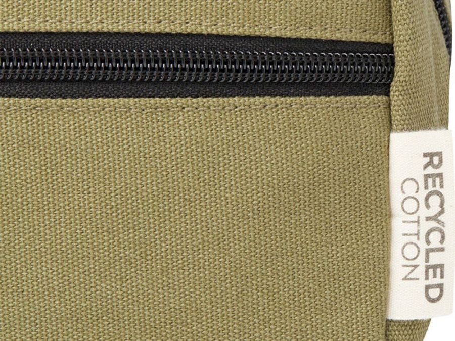 Косметичка из переработанного холста, сертифицированного по стандарту GRS, с подкладкой из переработанного РЕТ-пластика. Имеет передний карман на молнии и одно главное отделение на молнии с карманами для организации, а также удобную лямку. Декоративная металлическая пластина может придать логотипу сияние благодаря утонченному матовому покрытию. Емкость: 3,5 литр.