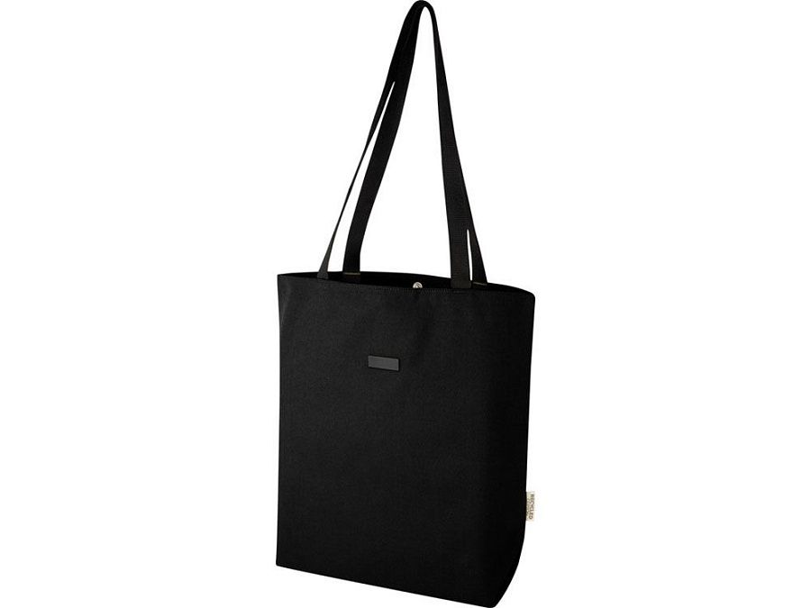 Эко-сумка изготовлена из переработанного холста, сертифицированного по стандарту GRS, и имеет подкладку из переработанного ПЭТ-пластика, сертифицированного по стандарту GRS. Универсальная эко-сумка имеет мягкое отделение для ноутбука с диагональю 15 дюймов и два карманных рукава внутри для телефона, кошелька или аксессуаров, а также удобную застежку на кнопке для открытия и удобные плетеные ручки из хлопка. Декоративная металлическая пластина может придать логотипу сияние благодаря утонченному матовому покрытию.