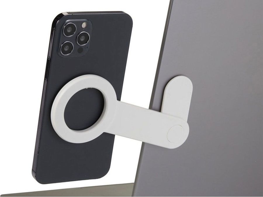 Держатель для телефона изготовлен из переработанного пластика, что делает его более экологичным выбором. Держатель упрощает многозадачность при использовании конфигурации рабочего стола с двумя экранами. Держатель очень прост в использовании: просто прикрепите сверхпрочную наклейку 3M основания на обратную сторону монитора ПК или ноутбука, затем поверните кронштейн держателя, чтобы обнажить магнитное кольцо и прикрепить телефон. Также поставляется с металлическим кольцом для немагнитных телефонов или чехлов.