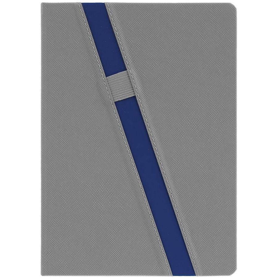 Ежедневник с твердой обложкой и тонированным обрезом. Выполнен из материала Nice Touch, серый СС, и Soft Touch Ultra, синий НН, дополнен серым ляссе.