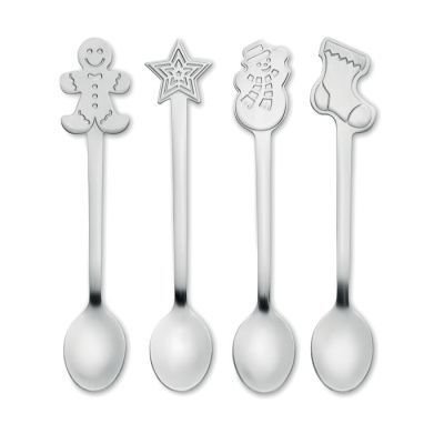Набор из 4 чайных ложек из нержавеющей стали с рождественскими мотивами. Поставляется в подарочной коробке.