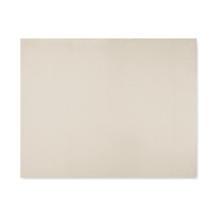 Легкое вафельное одеяло из хлопка плотностью 300 гр/м². Поставляется в белой коробке с крышкой.