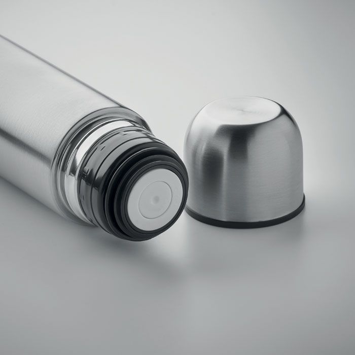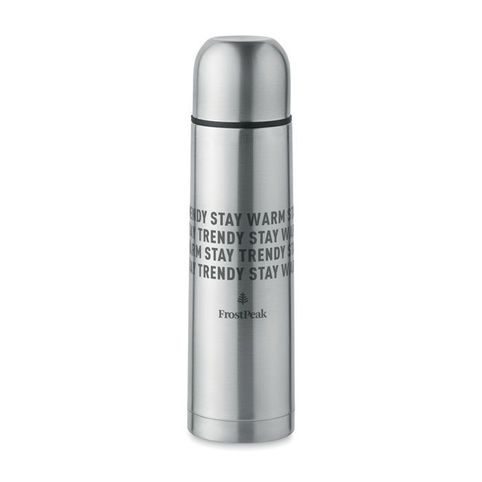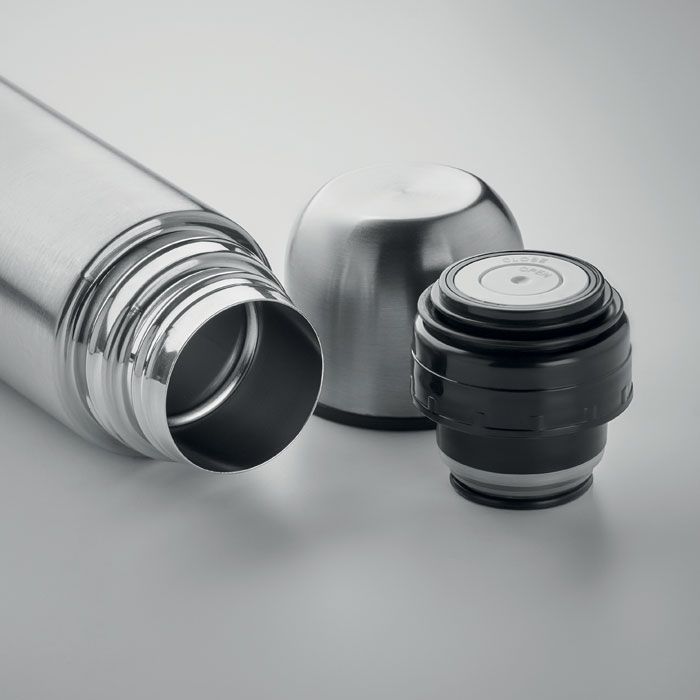 Термос с двойными стенками из переработанной нержавеющей стали 90% и 10% обычной нержавеющей стали. Герметичен. Емкость: 500 мл.