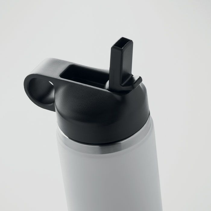 Термобутылка с двойными стенками из переработанной нержавеющей стали 90% и 10% нержавеющей стали с крышкой из полипропилена, ручкой и встроенной соломинкой. Герметична. Емкость: 500 мл.