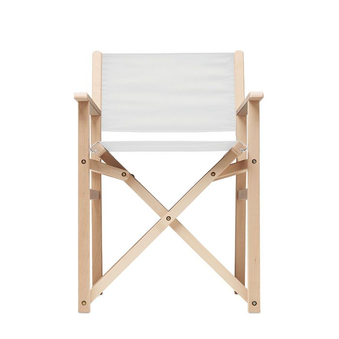 Foldable director's beach/camping wooden chair with removable polyester fabric seat. Max: weight 80 kg. Made in EU. This item can only be delivered in multiples of outer carton quantity which is 2 pieces.