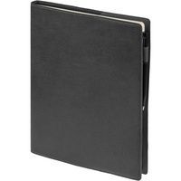 Ежедневник в суперобложке выполнен из материала La Fite, темно-серый EE, дополнен ляссе и капталом черного цвета.