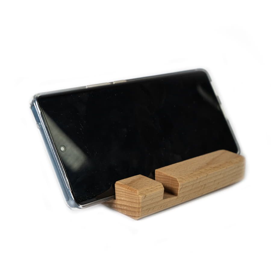 Подставка для смартфона, две разные выемки позволяют установить в держатель смартфон и или планшет как в плотном бронечехле, так и без него, при этом смартфон и или планшет будет хорошо зафиксирован, выполнен из премиум материала бук. Материал отличается следующими преимуществами: Прочность - премиум материал дерева Бук Безопасность - обладает противомикробными свойствами, не вызывает аллергических реакций Простой в уходе - моется теплой водой, допускается использование средств для мытья посуды Экологичность - натуральное и безопасное сырьеУдобство - устойчив на любых плоских поверхностях, включая диваны и кровативозможно привезти под заказ тираж от 1000 шт