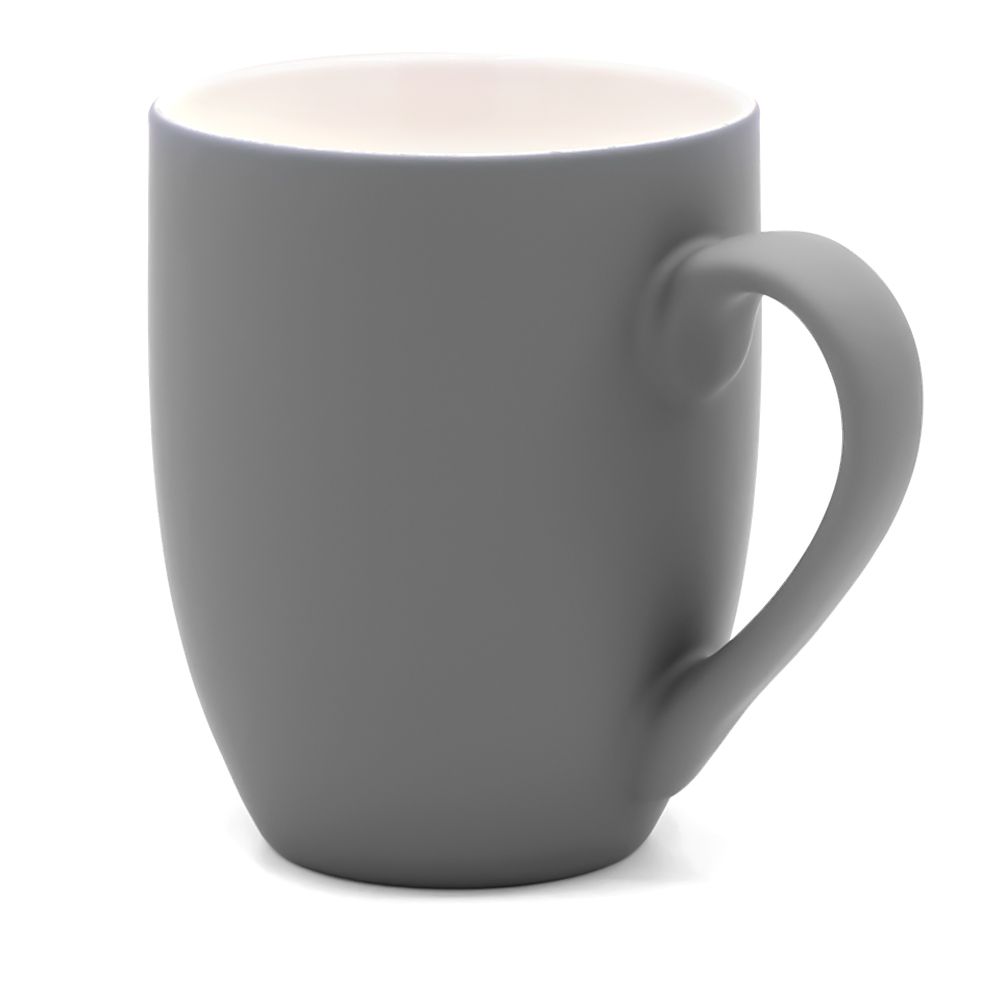 Данная модель имеет приятную, бархатистую на ощупь поверхность. Материал, используемый для изготовления этой кружки – костяной фарфор. это, если можно сказать, “гуманная” разновидность посуды из костяного фарфора: вместо костяной золы в его рецепт входит синтетический заменитель, который позволяет добиться сходных с костяным фарфором характеристик по прозрачности, белизне и прочности