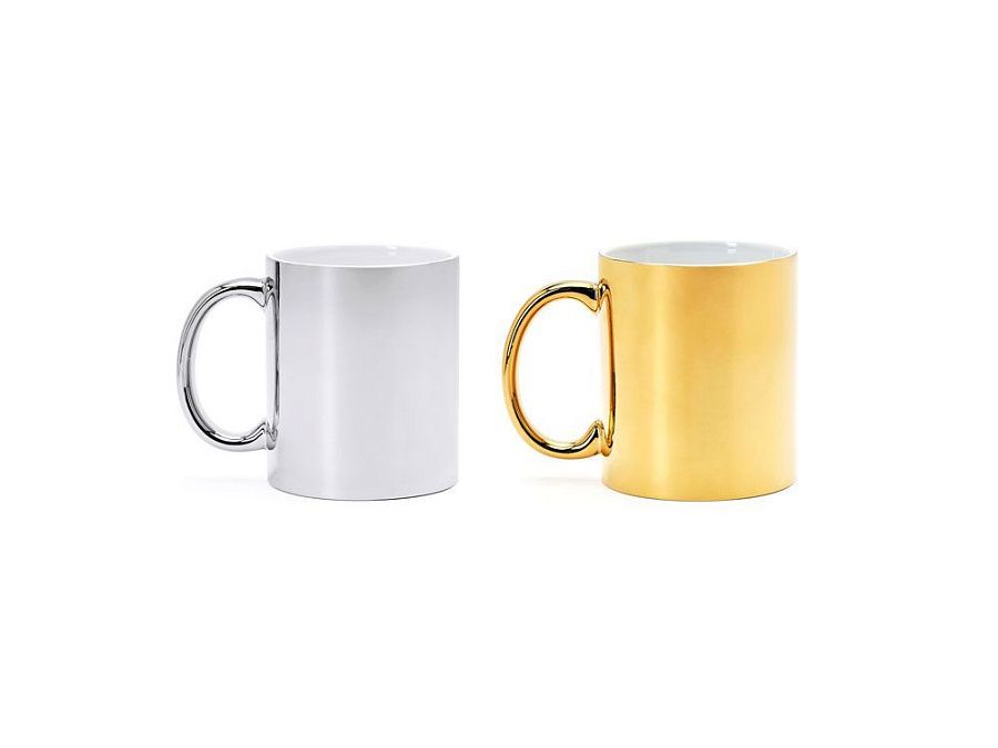 Керамическая кружка объемом 350 мл с глянцевым покрытием. Специально для лазерной гравировки. Доступна в серебряном и золотом цвете.