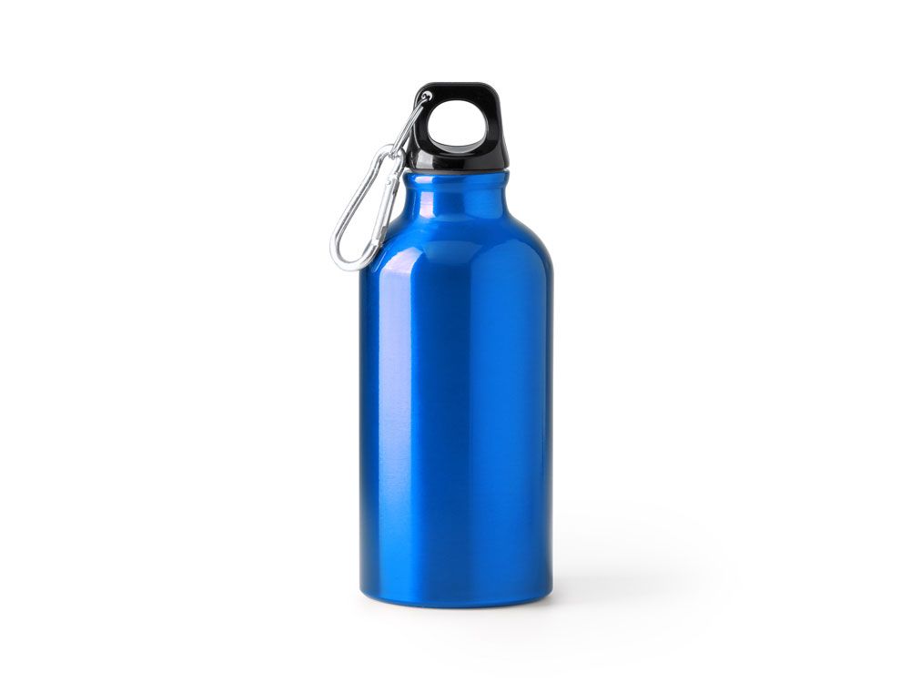 Бутылка из переработанного алюминия с карабином. Емкость 400 мл. Карабин для более удобной переноски бутылки, не рекомендуется для лазания.