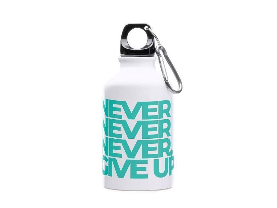 Алюминиевая бутылка с карабином. Черная крышка и карабин в тон бутылки. Емкость 330 мл. Поставляется в дизайнерской упаковке.