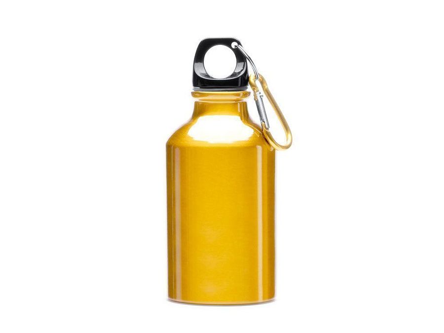 Алюминиевая бутылка с карабином. Черная крышка и карабин в тон бутылки. Емкость 330 мл. Поставляется в дизайнерской упаковке.