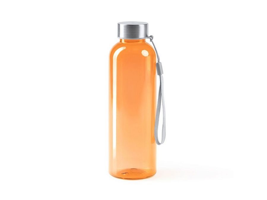 Бутылка из РПЭТ с полупрозрачным цветным корпусом. Емкость 600 мл. Ремешок для переноски в комплекте