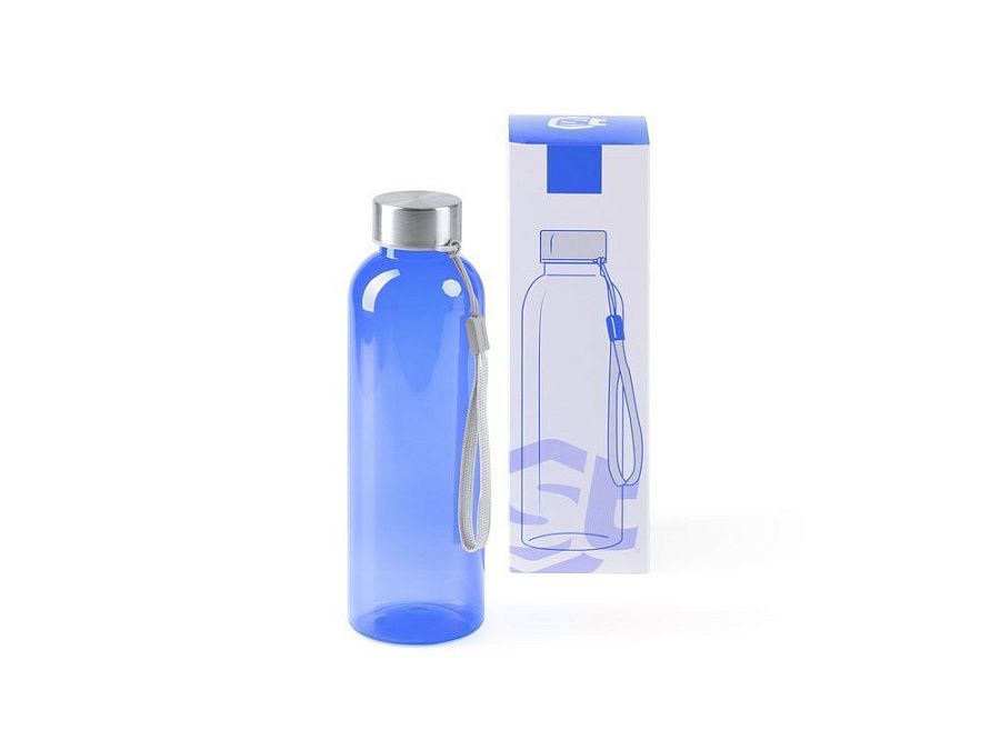 Бутылка из РПЭТ с полупрозрачным цветным корпусом. Емкость 600 мл. Ремешок для переноски в комплекте